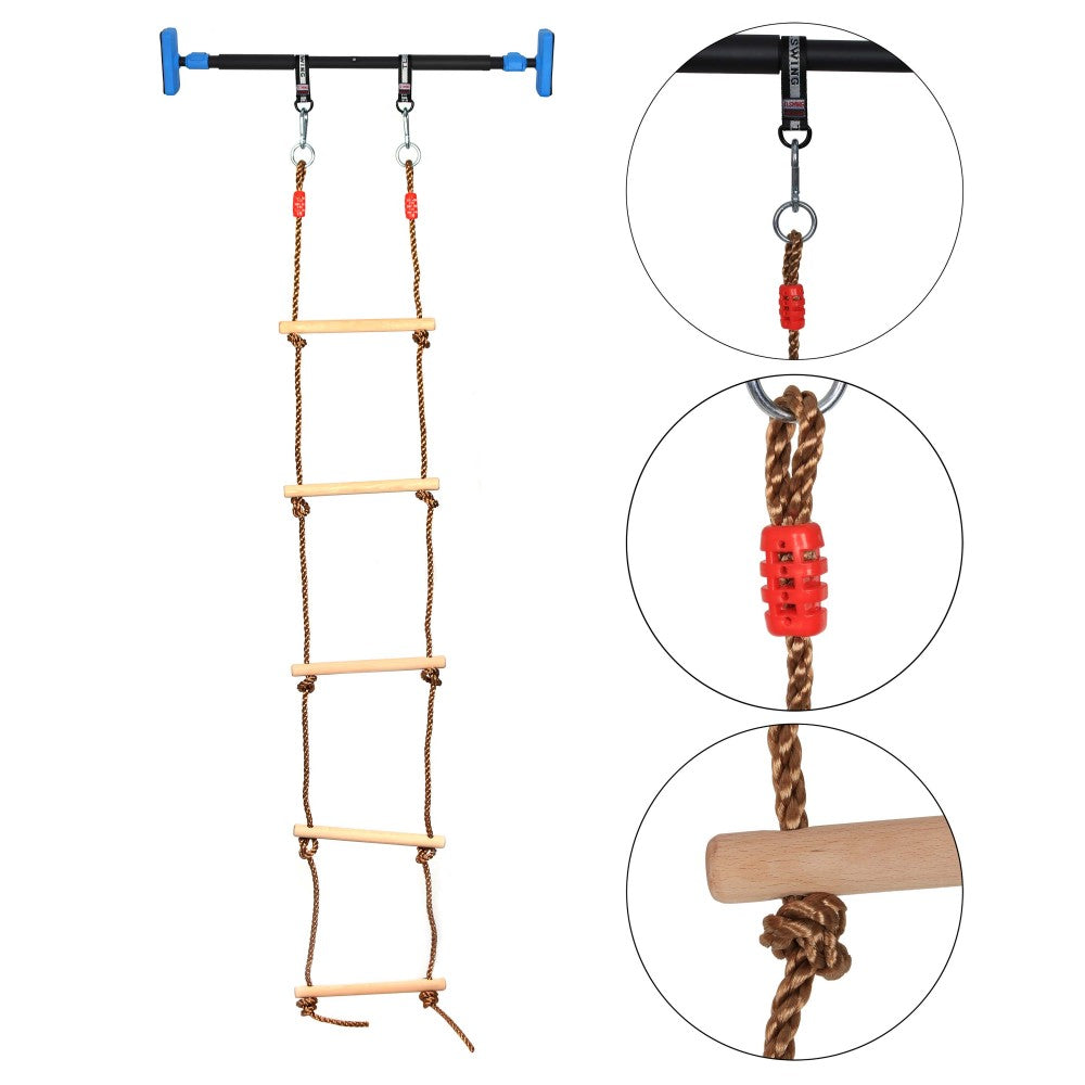 تتضمن بار للتمارين ومقعد أرجوحة كلاسيكي وحبل تسلق وحلقة تسلق وسلم للتسلق