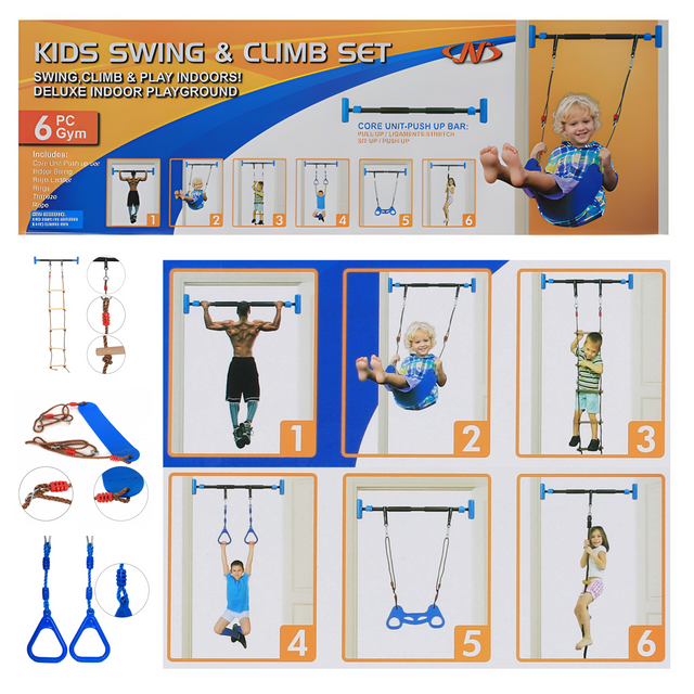 نقدم لكم مجموعة الأرجوحة والتسلق المثالية في الأماكن المغلقة والمصممة للعب النشط! تدعم هذه المجموعة المتينة ما يجعلها مثالية للأطفال للتأرجح والتسلق واستكشاف الجانب المغامر الخاص بهم بأمان في الداخل. مصنوع من مواد متينة، فهو يشجع النشاط البدني مع تعزيز التنسيق والتوازن. سهلة التجميع ومثالية للمساحات الصغيرة، مجموعة التأرجح والتسلق هذه ستبقي أطفالك مستمتعين لساعات من المرح والتمرين!