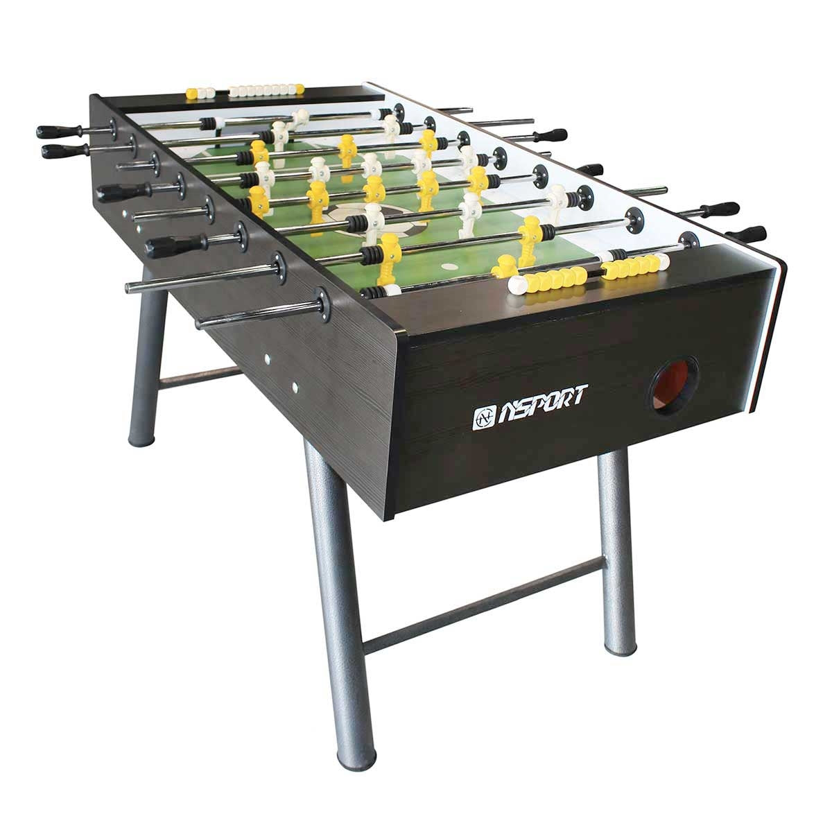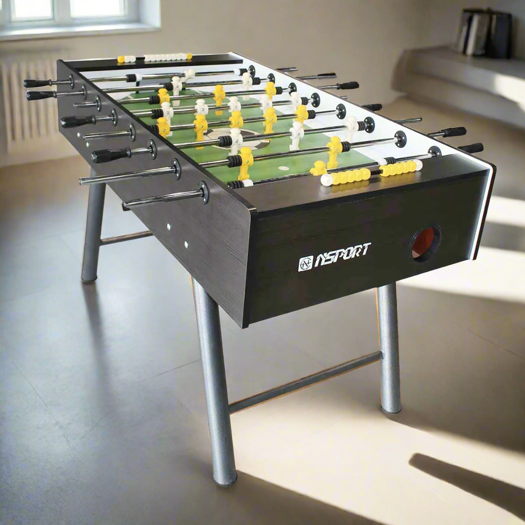 تتميز طاولة كرة القدم بلاك بيرل من NSPORT بالمتانة والأداء العالي. تم تصميم الخزانة بسمك 25 ملم لتحمل الجولات المكثفة من اللعب، مع أرجل معدنية مستديرة بقطر 63 ملم لضمان ثبات الطاولة. الأعمدة بسمك 16 ملم تأتي بتصميم تلسكوبي أو قياسي، مما يوفر تحكمًا دقيقًا في الكرة، وتساعد المقابض البلاستيكية الاحترافية على تحسين القبضة لجعل كل حركة أكثر استجابة.